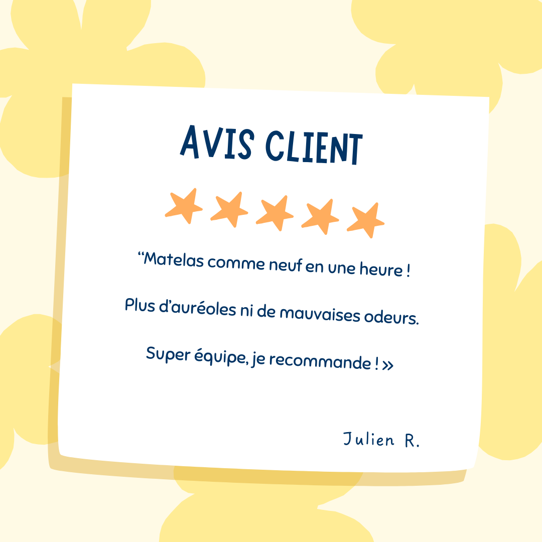 Pour un sommeil vraiment réparateur, notre nettoyage en profondeur débarrasse votre matelas des acariens, bactéries et allergènes. Dites adieu aux irritations et profitez de nuits plus saines et apaisées.